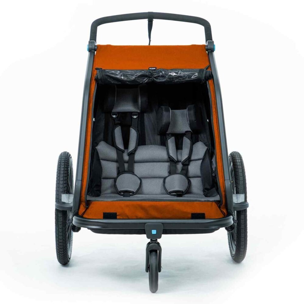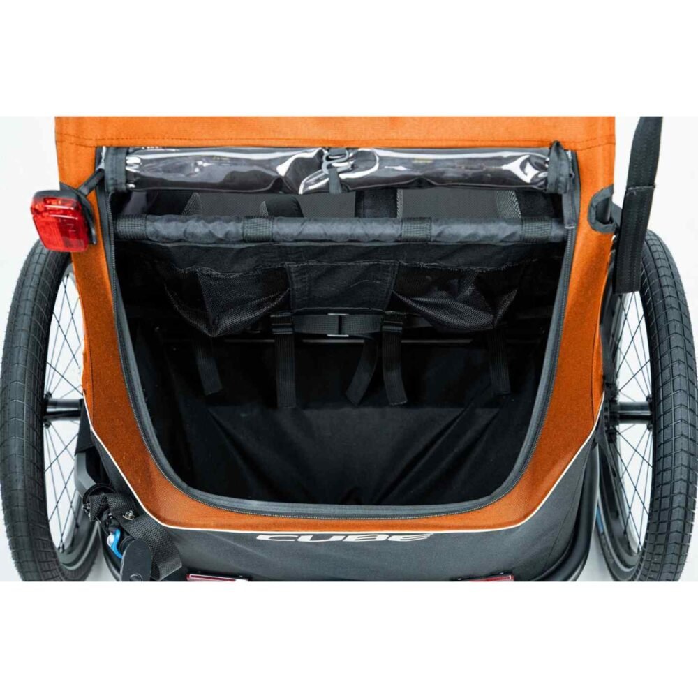 La remorque pour vélo Cube Double CMPT est le compagnon idéal pour la vie quotidienne. Ce multitalent impressionne par ses fonctions ingénieuses de remorque et de poussette. La grande moustiquaire à l’avant et sur les côtés empêche les passagers indésirables d’entrer sans nuire à la circulation de l’air frais. Grâce à la protection solaire, les petits passagers ne seront pas aveuglés pendant leur sieste, et la protection contre les éclaboussures garde les enfants au sec, même lors de promenades boueuses.