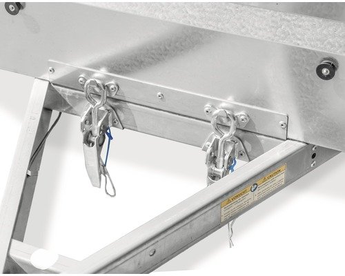 La remorque Steely est construite avec une structure de cadre et de paroi latérale en tôle d’acier galvanisée à chaud, assurant une résistance optimale à la corrosion et aux intempéries. Le timon de traction en V, également galvanisé à chaud, garantit une longévité accrue. La plaque de fond en bois spécial avec revêtement résine phénolique offre une surface de chargement robuste et durable.