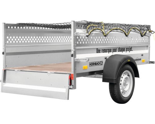 Humbaur Remorque de projet Steely FR y compris rehausse pour tôle perforée filet et roue jockey 2050 x 1095 x 600 mm non freinée poids total autorisé 750 kg