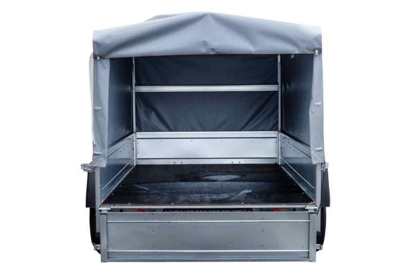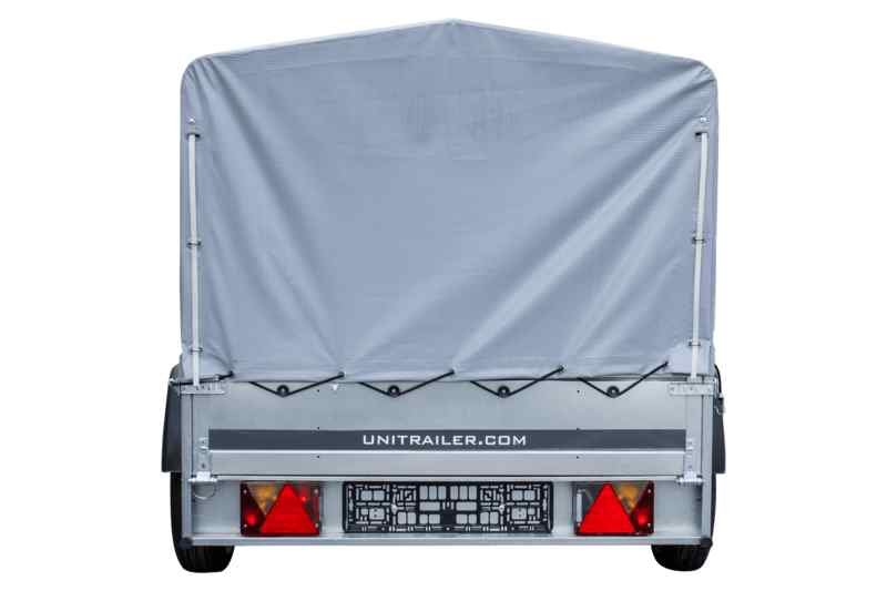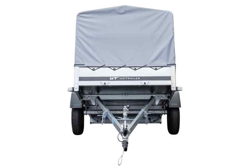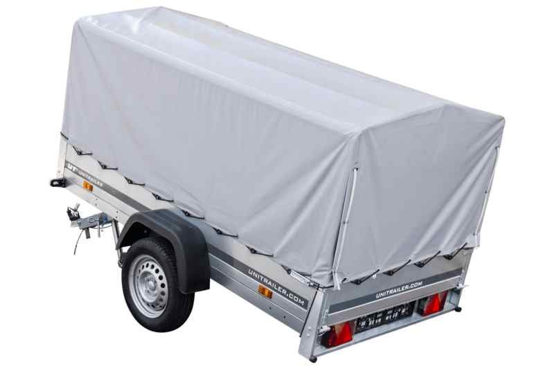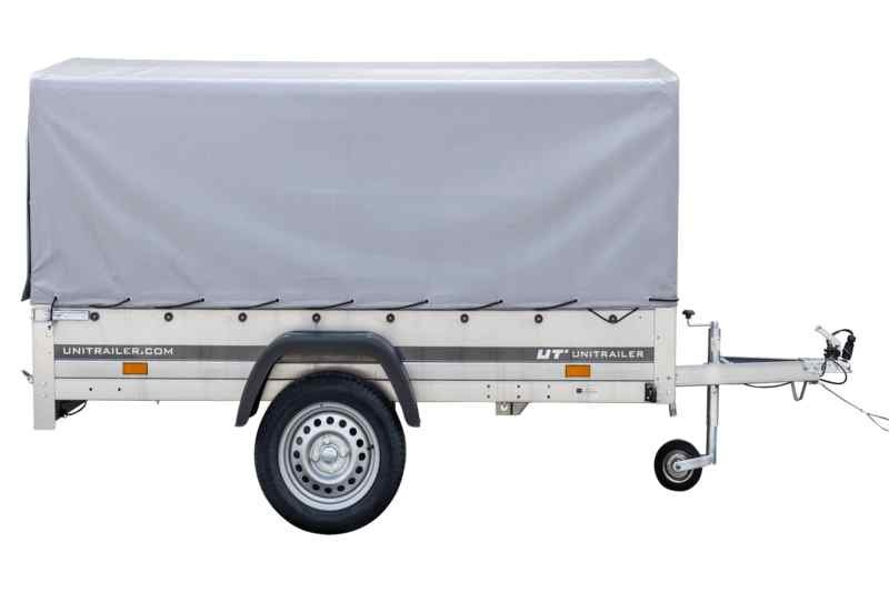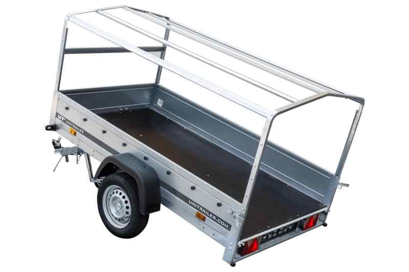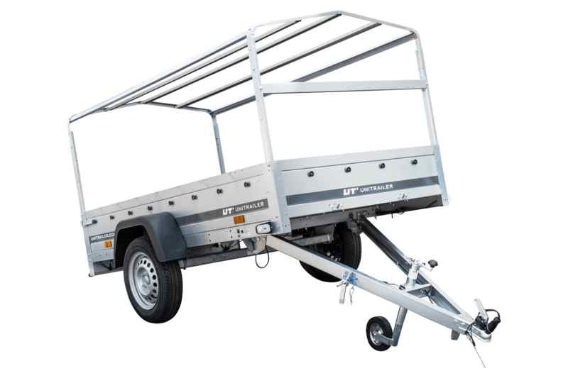 Remorque automobile avec bâche haute, arceau et roue jockey. UNITRAILER Garden Trailer 230 KIPP est le dernier produit de notre offre. C’est la plus grande remorque dans notre magasin avec PTAC jusqu’à 750 kg. Elle est équipée de la ridelle arrière ouvrable, ce qui rend facile le chargement et le déchargement de la cargaison. Grâce au timon pliable, elle peut être placée verticalement sur le panneau arrière. Nous faisons toutes les formalités liées à l’achat pour vous. La remorque est livrée à votre domicile avec tous les documents nécessaires pour l’immatriculer.