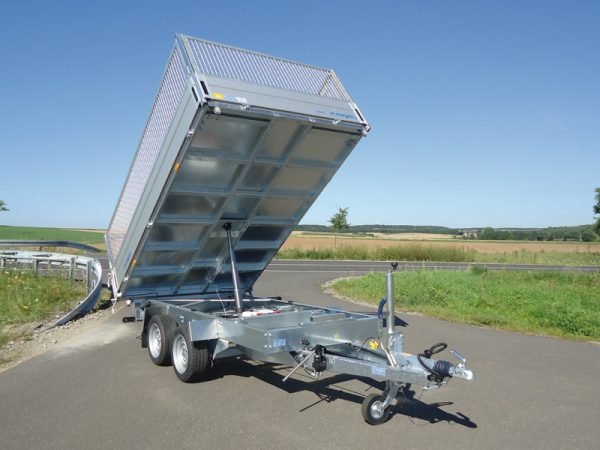 La remorque est équipée d’une pompe hydraulique électrique performante. Une pompe manuelle de secours est également intégrée. Ce système permet un basculement fluide et sécurisé de la benne. Le déchargement des matériaux devient ainsi rapide et efficace.