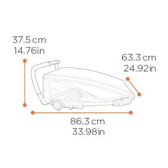 Avec un poids de 14,2 kg, cette remorque reste maniable. Son pliage rapide et son encombrement réduit (86,3 x 63,3 x 37,5 cm une fois pliée) en font un accessoire pratique pour les déplacements.
